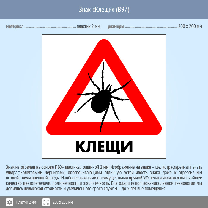 Знак «Клещи», B97 (пластик, 300х300 мм) в Курске купить