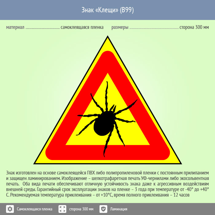 Знак «Клещи», B99 (пленка c ламинированием, сторона 200 мм) в Курске купить