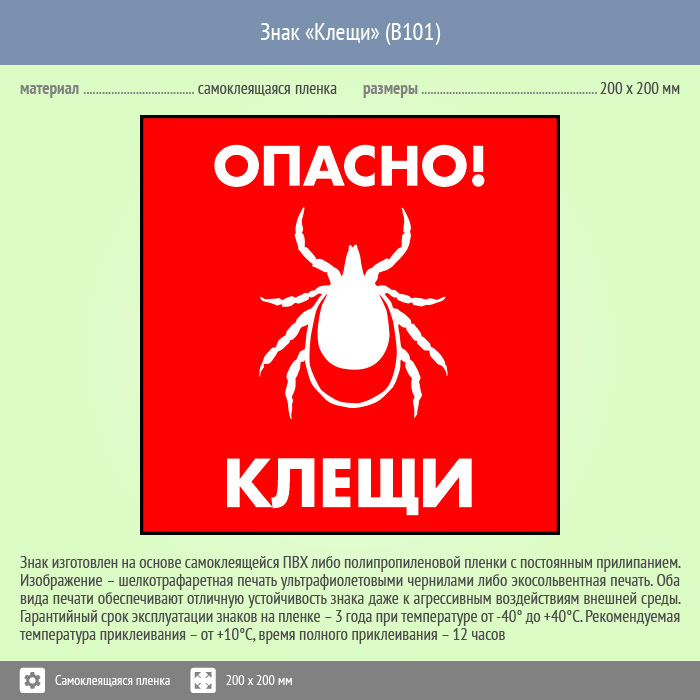 Знак «Опасно! Клещи», B101 (пленка, 200х200 мм) в Курске купить