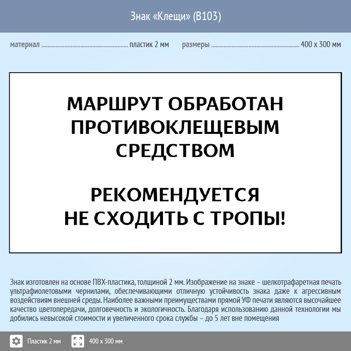 Знак «Клещи», B103 (пластик, 300х200 мм) в Курске купить