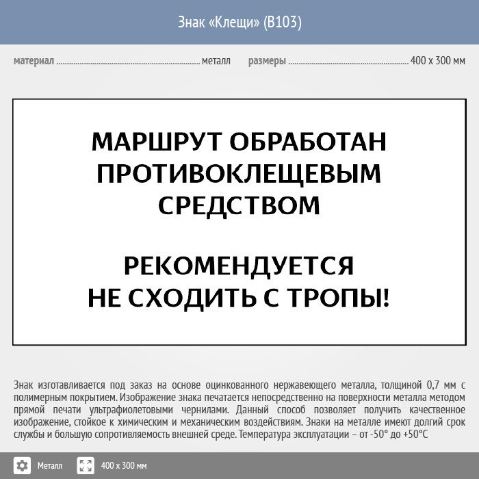 Знак «Клещи», B103 (металл, 300х200 мм) в Курске купить
