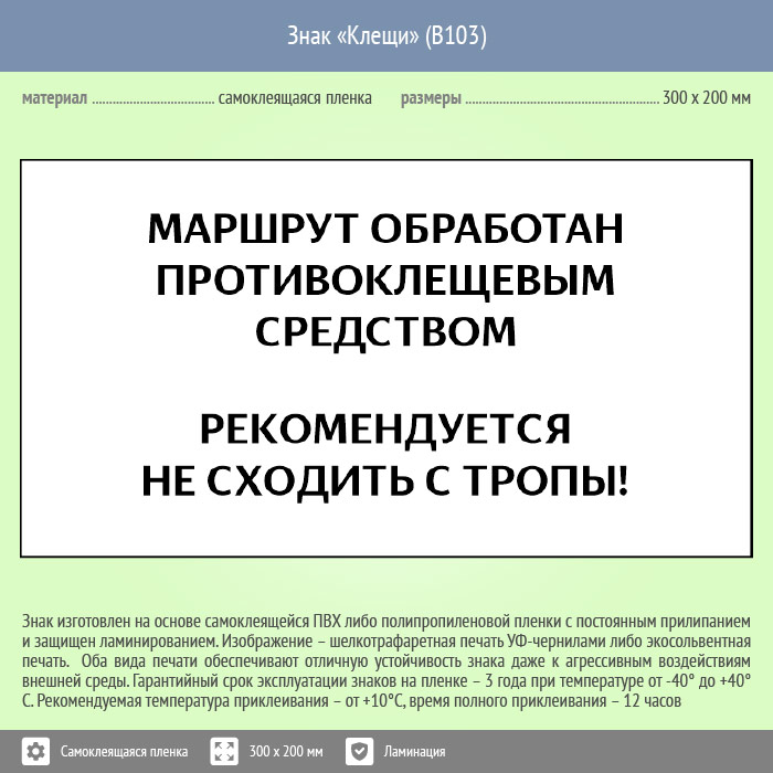 Знак «Клещи», B103 (пленка c ламинированием, 400х300 мм) в Курске купить