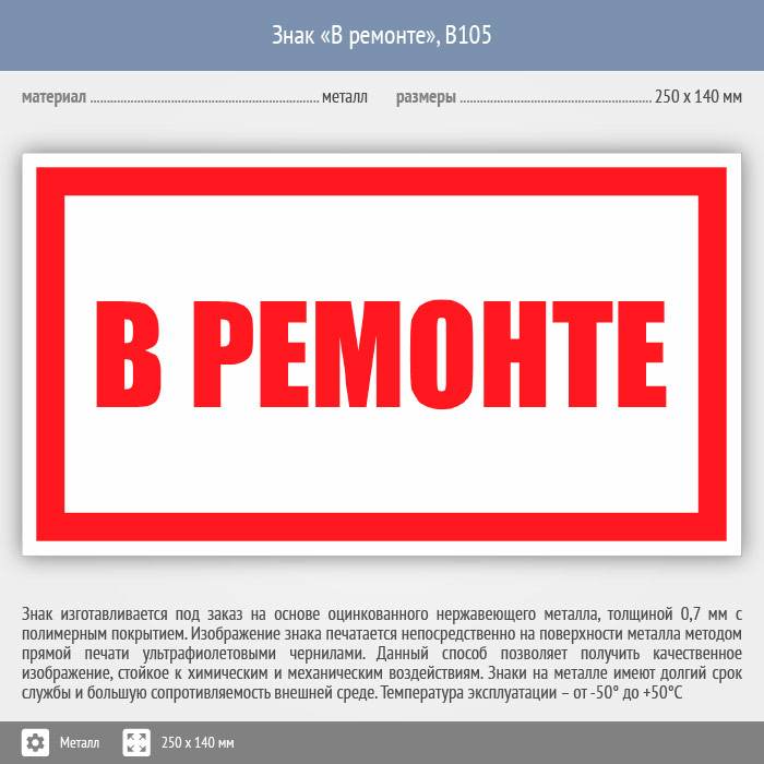 Знак «В ремонте», B105 (металл, 250х140 мм) в Курске купить