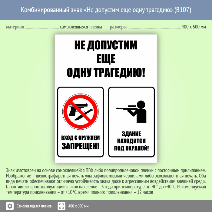 Комбинированный знак «Не допустим еще одну трагедию», B107 (пленка, 400х600 мм) в Курске купить