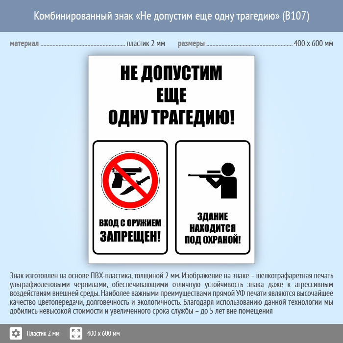 Комбинированный знак «Не допустим еще одну трагедию», B107 (пластик, 400х600 мм) в Курске купить