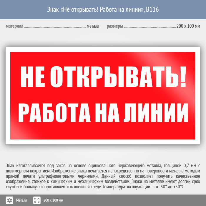Знак «Не открывать! Работа на линии», B116 (металл, 200х100 мм) в Курске купить