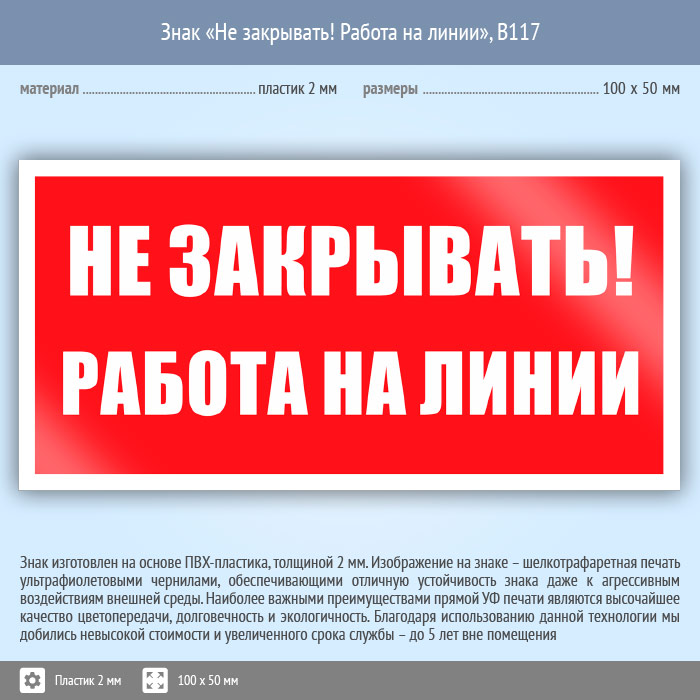 Знак «Не закрывать! Работа на линии», B117 (пластик, 100х50 мм) в Курске купить