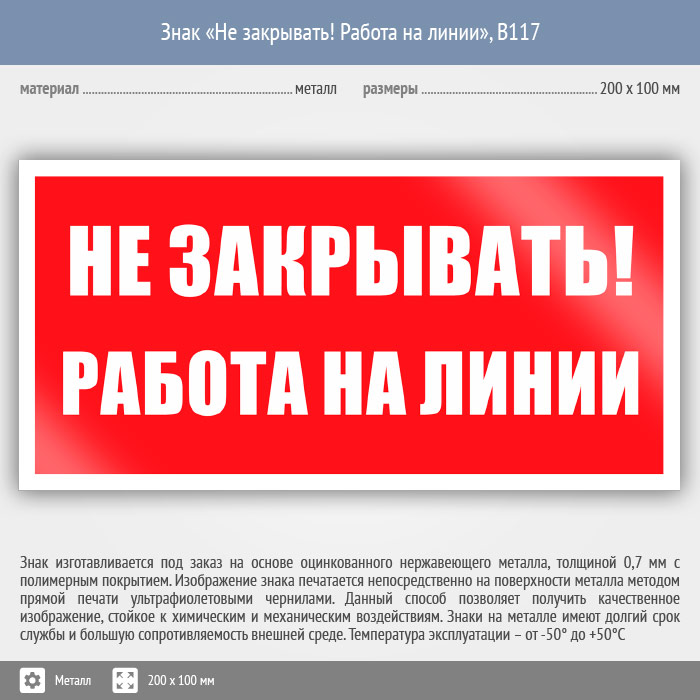 Знак «Не закрывать! Работа на линии», B117 (металл, 200х100 мм) в Курске купить