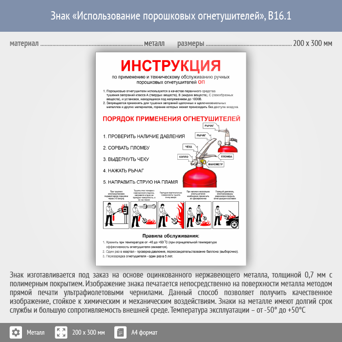 Знак «Использование порошковых огнетушителей», B16.1 (металл, 200х300 мм) в Курске купить