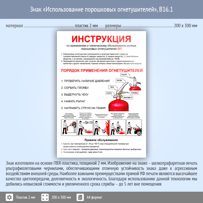 Знак «Использование порошковых огнетушителей», B16.1 (пластик, 200х300 мм) в Курске купить