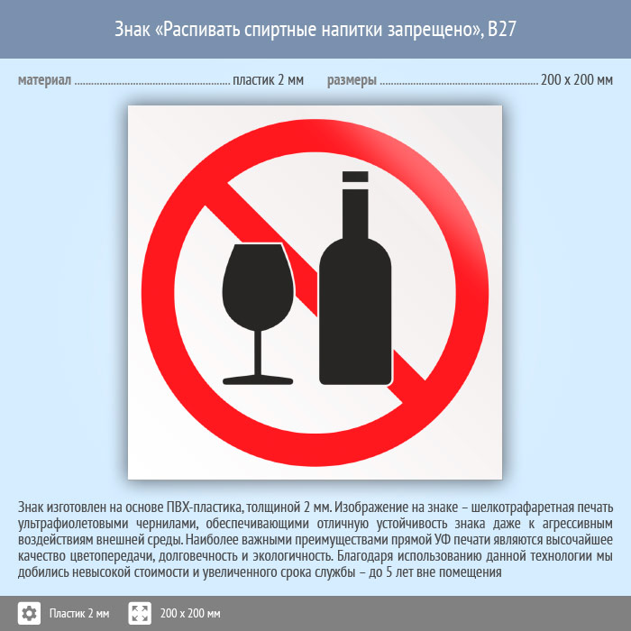 Знак «Распивать спиртные напитки запрещено», B27 (пластик, 200х200 мм) в Курске купить