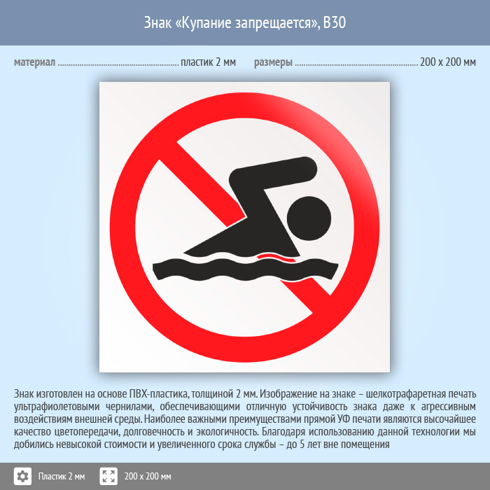 Знак «Купание запрещено», B30 (пластик, 200х200 мм) в Курске купить