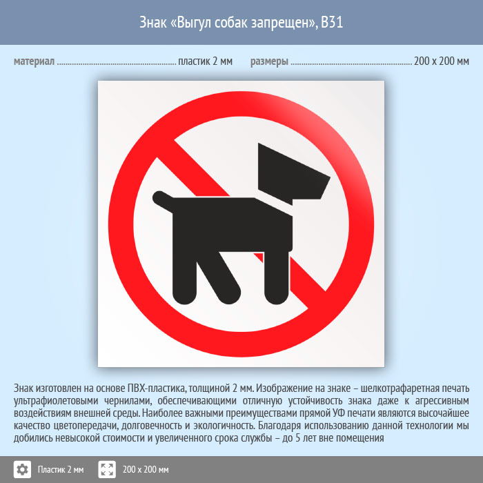 Знак «Выгул собак запрещен», B31 (пластик, 200х200 мм) в Курске купить