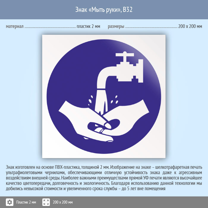 Знак «Мыть руки», B32 (пластик, 200х200 мм) в Курске купить