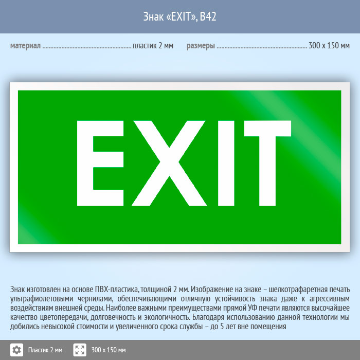 Знак «EXIT», B42 (пластик, 300х150 мм) в Курске купить