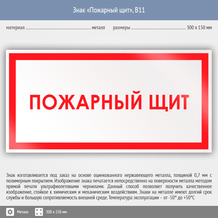 Знак «Пожарный щит», B11 (металл, 300х150 мм) в Курске купить