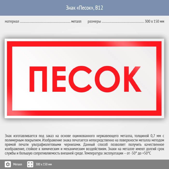Знак «Песок», B12 (металл, 300х150 мм) в Курске купить