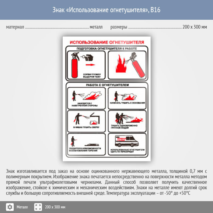 Знак «Использование огнетушителя», B16 (металл, 200х300 мм) в Курске купить