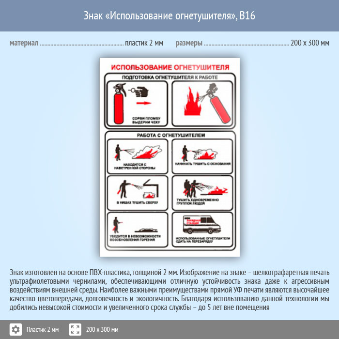 Знак «Использование огнетушителя», B16 (пластик, 200х300 мм) в Курске купить