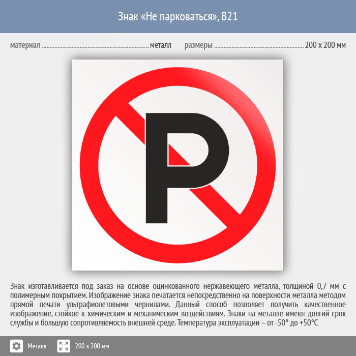 Знак «Не парковаться», B21 (металл, 200х200 мм) в Курске купить
