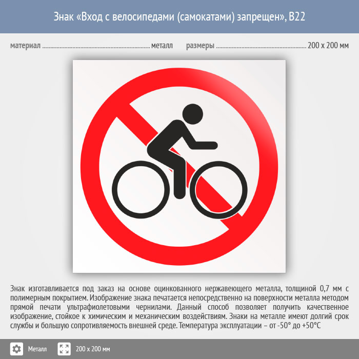 Знак «Вход с велосипедами (самокатами) запрещен», B22 (металл, 200х200 мм) в Курске купить