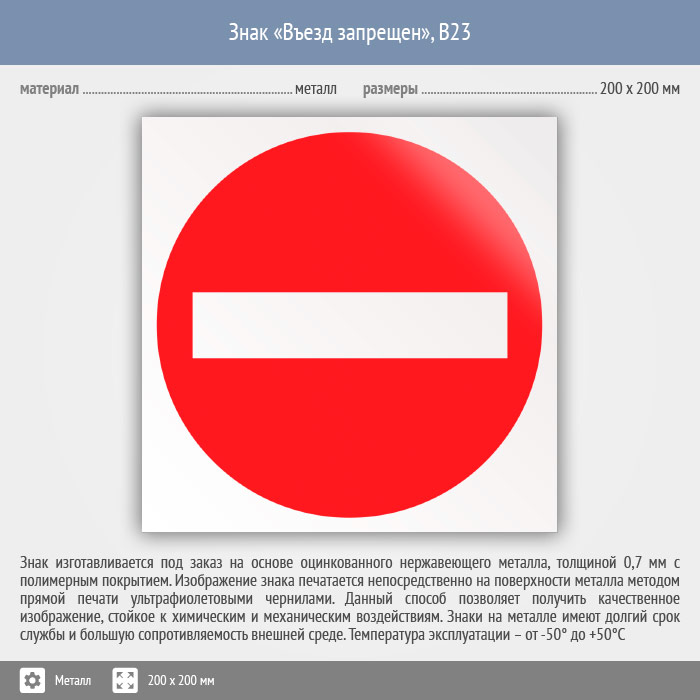 Знак «Въезд запрещен», B23 (металл, 200х200 мм) в Курске купить
