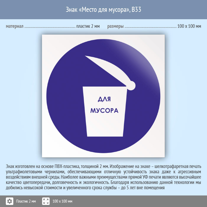 Знак «Место для мусора», B33 (пластик, 100х100 мм) в Курске купить