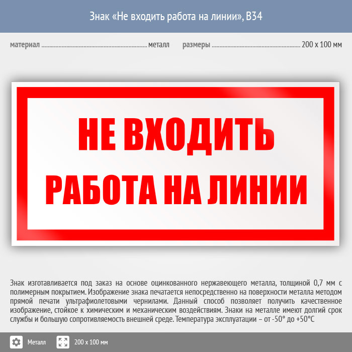 Знак «Не входить работа на линии», B34 (металл, 200х100 мм) в Курске купить