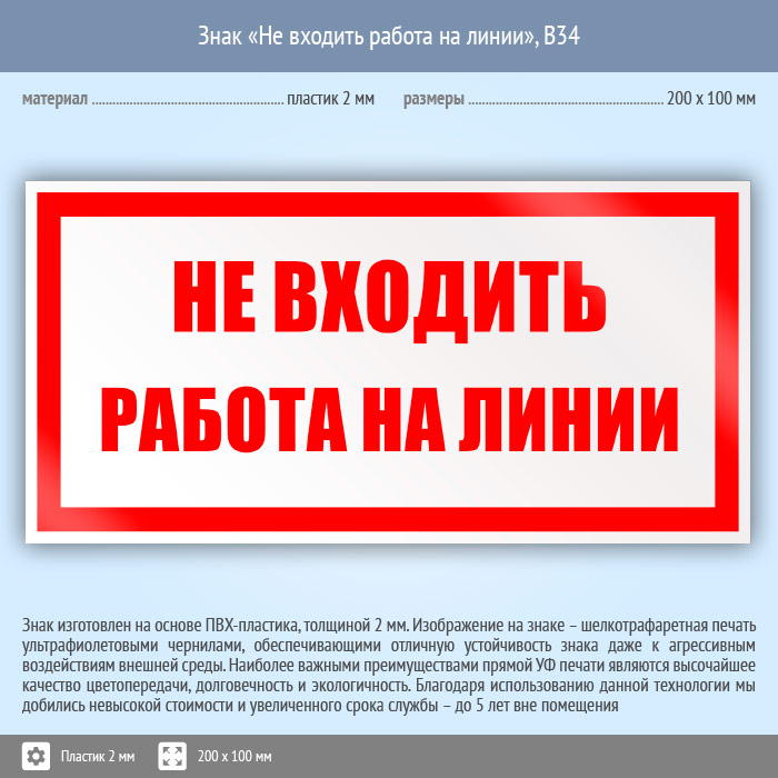 Знак «Не входить работа на линии», B34 (пластик, 200х100 мм) в Курске купить
