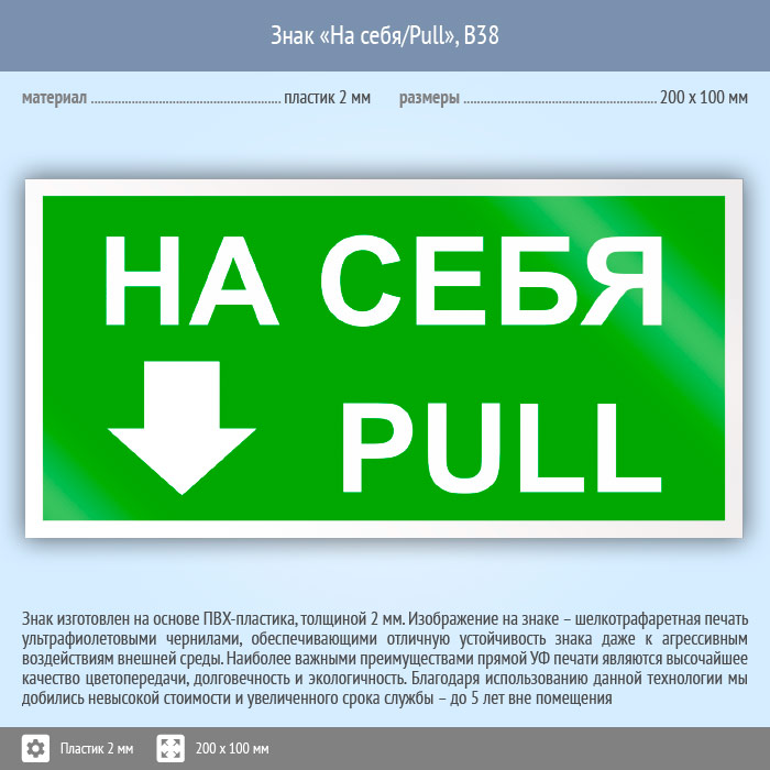 Знак «На себя/Pull», B38 (пластик, 200х100 мм) в Курске купить
