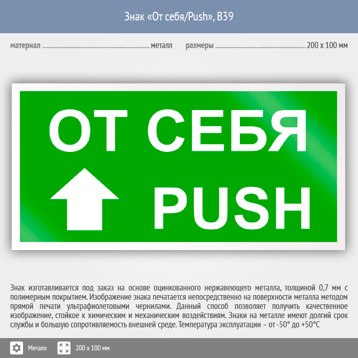 Знак «От себя/Push», B39 (металл, 200х100 мм) в Курске купить