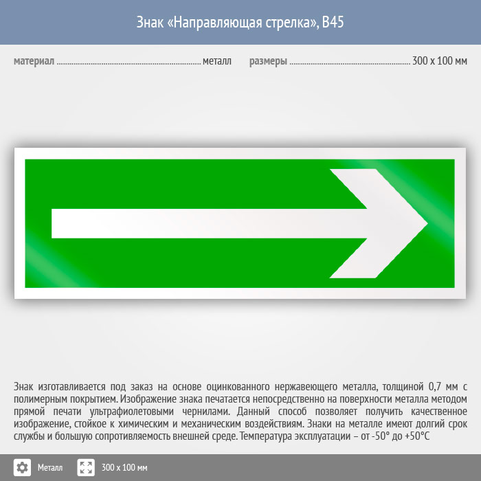 Знак «Направляющая стрелка», B45 (металл, 300х100 мм) в Курске купить