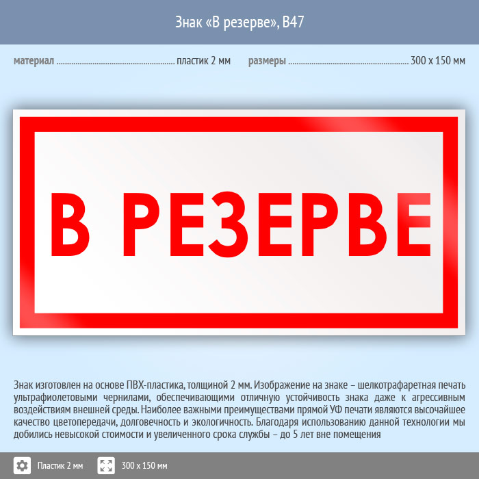 Знак «В резерве», B47 (пластик, 300х150 мм) в Курске купить