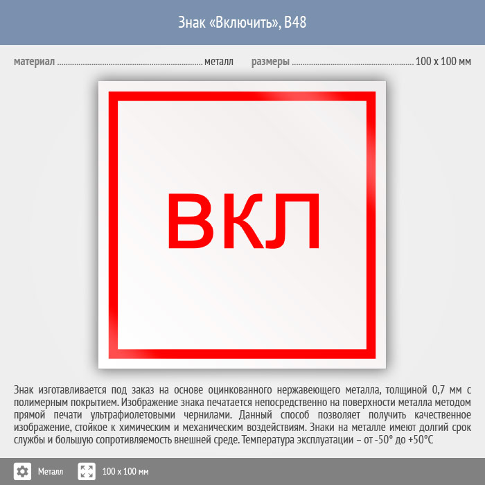 Знак «Включить», B48 (металл, 100х100 мм) в Курске купить