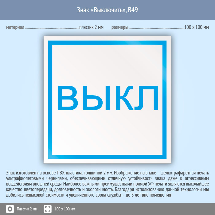 Знак «Выключить», B49 (пластик, 100х100 мм) в Курске купить