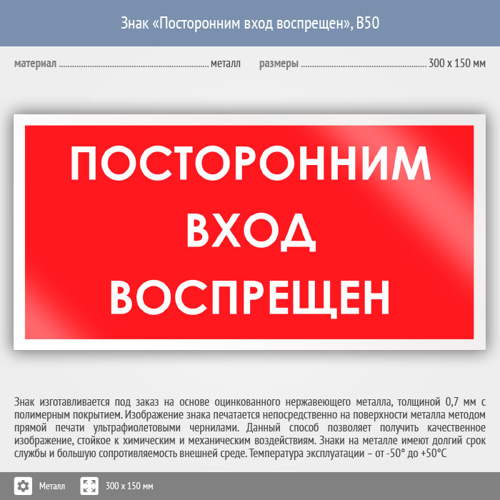 Знак «Посторонним вход воспрещен», B50 (металл, 300х150 мм) в Курске купить