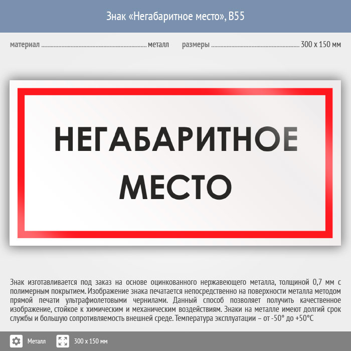 Знак «Негабаритное место», B55 (металл, 300х150 мм) в Курске купить