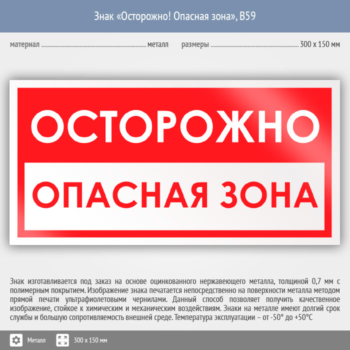 Знак «Осторожно! Опасная зона», B59 (металл, 300х150 мм) в Курске купить