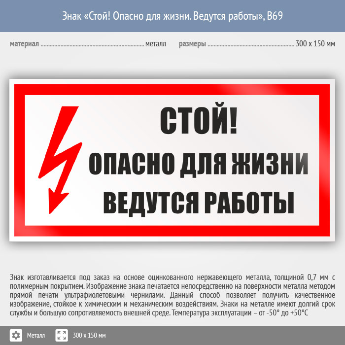 Знак «Стой! Опасно для жизни. Ведутся работы», B69 (металл, 300х150 мм) в Курске купить