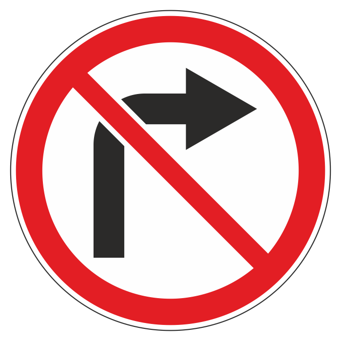 Дорожный знак 3.18.1 «Поворот направо запрещен» (металл 0,8 мм, I типоразмер: диаметр 600 мм, С/О пленка: тип В алмазная) в Курске купить