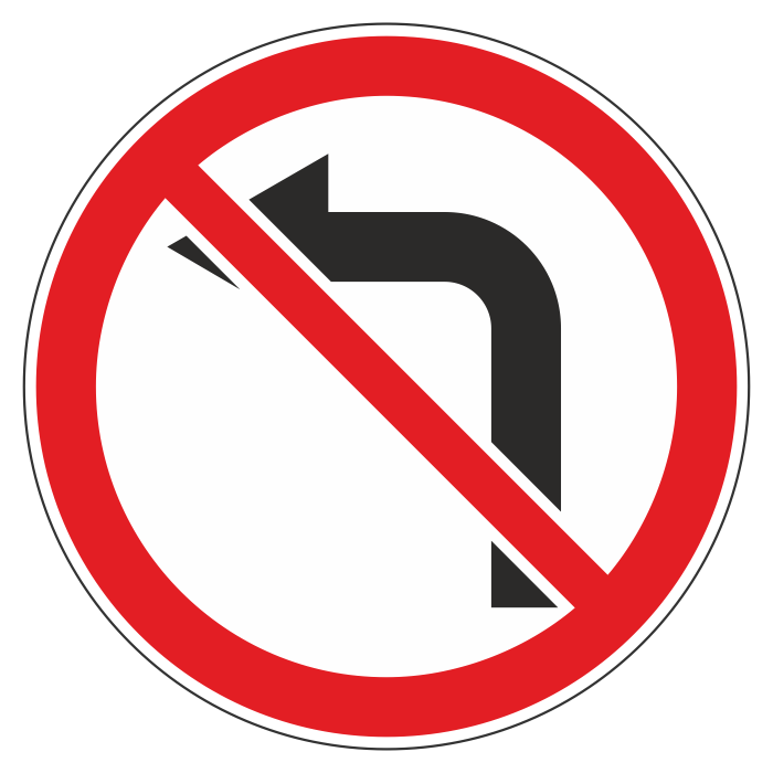 Дорожный знак 3.18.2 «Поворот налево запрещен» (металл 0,8 мм, II типоразмер: диаметр 700 мм, С/О пленка: тип А инженерная) в Курске купить