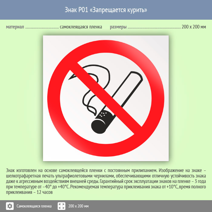 Знак P01 «Запрещается курить» (пленка, 200х200 мм) в Курске купить