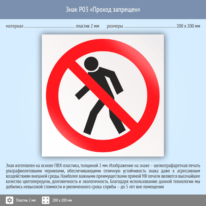 Знак P03 «Проход запрещен» (пластик, 200х200 мм) в Курске купить
