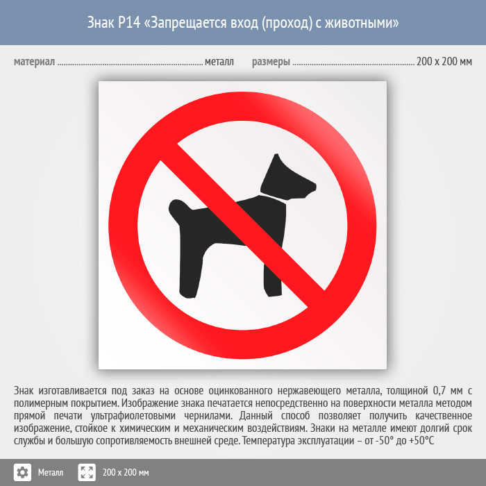 Знак P14 «Запрещается вход (проход) с животными» (металл, 200х200 мм) в Курске купить