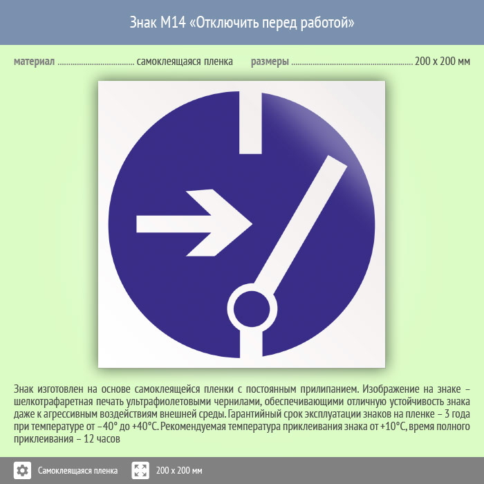 Знак M14 Отключить перед работой