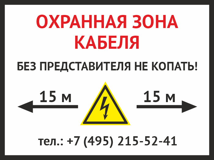 Знак «Охранная зона кабеля. Без представителей не копать», OZK-02 (пластик 2 мм, 400х300 мм) в Курске купить