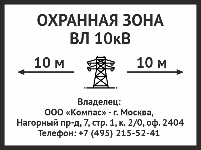 Знак «Охранная зона ВЛ 10 кВ (высоковольтной линии)», OZK-07 (пластик 2 мм, 400х300 мм) в Курске купить