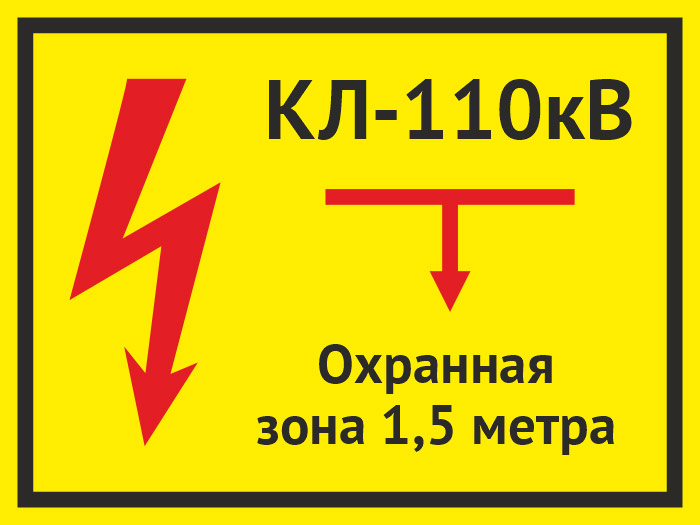Табличка «КЛ 110 кВ, охранная зона 1.5 метра», OZK-08 (пластик 2 мм, 400х300 мм) в Курске купить