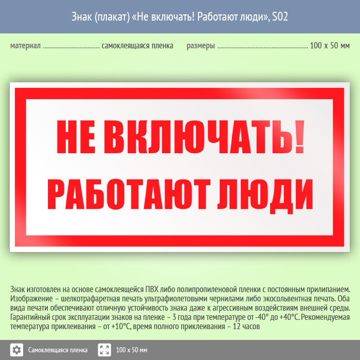 Знак (плакат) «Не включать! Работают люди», S02 (пленка, 100х50 мм) в Курске купить