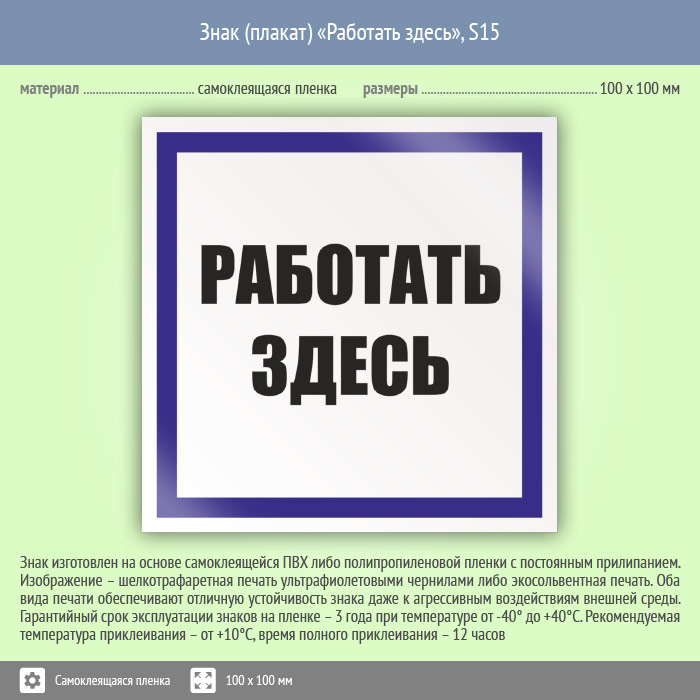 Знак (плакат) «Работать здесь», S15 (пленка, 100х100 мм) в Курске купить